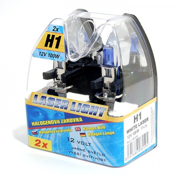 Halogenová autožárovka H1 12V 100W, patice P14,5s, sada 2 kusy. Provedení WHITE LASER - světlo s nádechem bílé barvy.