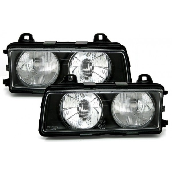 Přední čirá světla BMW E36 Limuzína/Touring (Combi)/Compact/Coupe/Cabrio 12/1990-08/1999 – el. ovládání(motorky nejsou součástí), dálková světla H1, potkávací světla H1, parkovací světla, evropská homologace "E" – vyražena na světlech. Super cena. Uvedená cena je za pár. Jsme přímým dovozcem!!