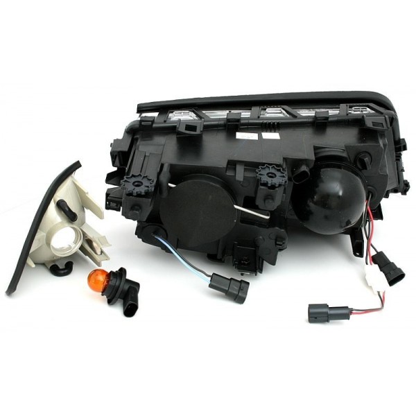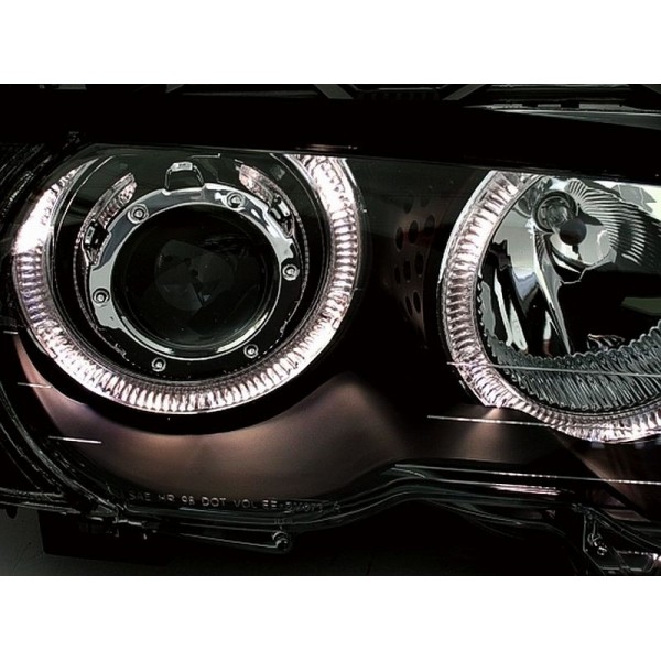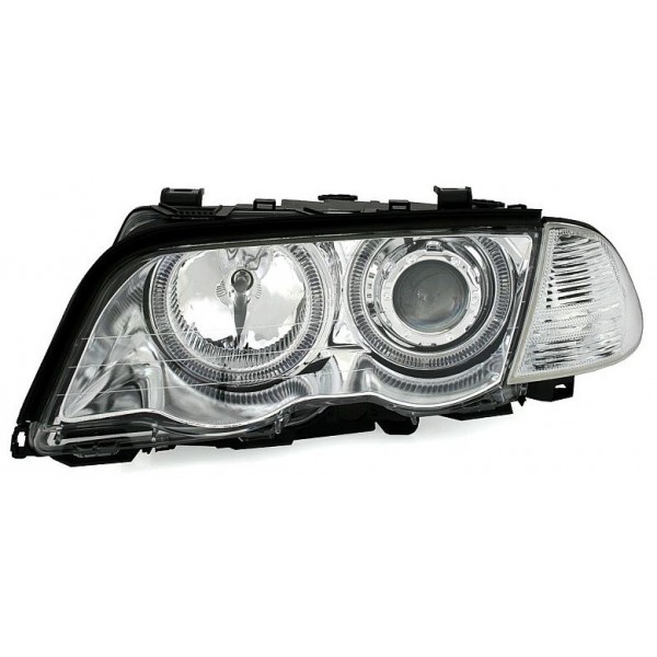 Přední čirá světla BMW 3-řada E46 Limuzína/Touring (Combi) 5/1998-8/2001 – el. ovládání(motorky jsou součástí), dálková světla H7, potkávací světla H7, směrová světla, parkovací světla LED ANGEL EYES kroužky, evropská homologace "E" – vyražena na světlech. Super cena. Uvedená cena je za pár. Jsme přímým dovozcem!!