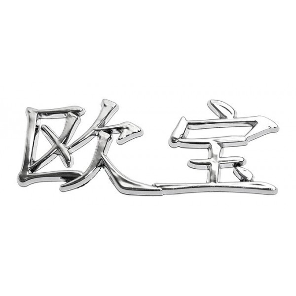 Plastový samolepící emblém řady 3D logo s povrchovou úpravou chrom. Motiv evropské značky automobilů psané čínskými znaky. Řada China letters.