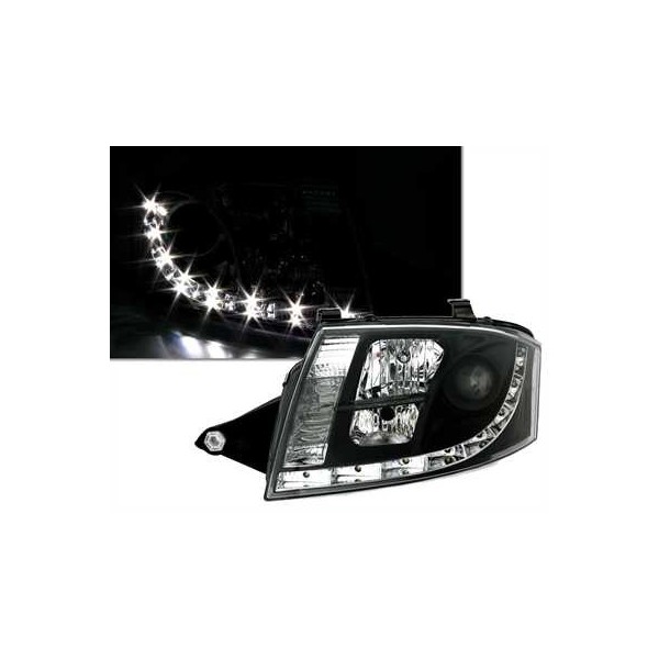 Přední čirá světla Audi TT 8N 10/1998-6/2006 – el. ovládání(dodáváno s motory), dálková světla H1, potkávací světla H7, mlhová světla H7, parkovací světla – LED pruh, směrová světla, evropská homologace "E" – vyražena na světlech. POZOR!! 10-PINOVÝ KONEKTOR. Super cena. Jsme přímým dovozcem!