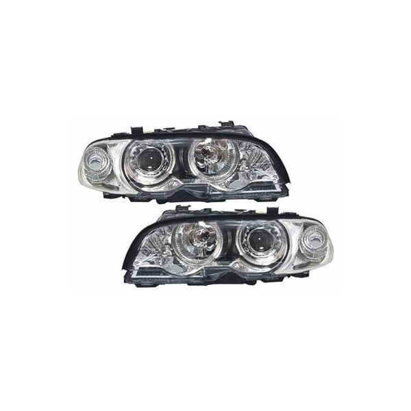 Přední čirá světla BMW 3-řada E46 Coupé/Cabrio 04/1999-08/2001 – el. ovládání(motorky jsou součástí), dálková světla H7, potkávací světla H7, směrová světla, parkovací světla ANGEL EYES kroužky, evropská homologace "E" – vyražena na světlech. Super cena. Uvedená cena je za pár. Jsme přímým dovozcem!!