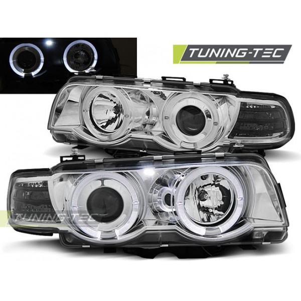 Přední čirá světla BMW E38 7er 98-01 – el. ovládání, dálková světla H1, potkávací světla H7, směrová světla, LED angel eyes, evropská homologace "E". Super cena. Uvedená cena je za pár. Jsme přímým dovozcem!!