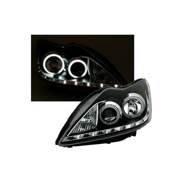 Přední čirá světla Ford Focus 08-11 – el. ovládání, dálková světla, potkávací světla, směrová světla, CCFL NEON angel eyes + LED diody, evropská homologace "E". CCFL (Cold Cathode Fluorescent Light Technologie) = studené katodové fluorescenční světlo. 30x jasnější svítivost než u klasických Angel Eyes. Super cena. Uvedená cena je za pár. Jsme přímým dovozcem!!