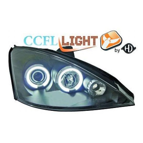 Přední čirá světla Ford Focus 98-01 – el. ovládání, dálková světla, potkávací světla, směrová světla, CCFL angel eyes, evropská homologace "E". CCFL (Cold Cathode Fluorescent Light Technologie) = studené katodové fluorescenční světlo. 30x jasnější svítivost než u klasických Angel Eyes. Super cena. Uvedená cena je za pár. Jsme přímým dovozcem!!