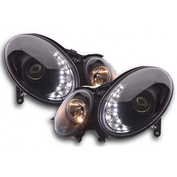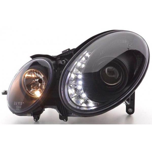 Čirá světla Mercedes Benz W211 E-tř. 02-06 s denním svícením – XENON, černá