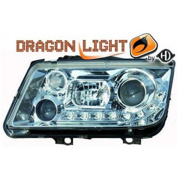 Čirá světla VW Bora 98-05 s denním svícením – chrom