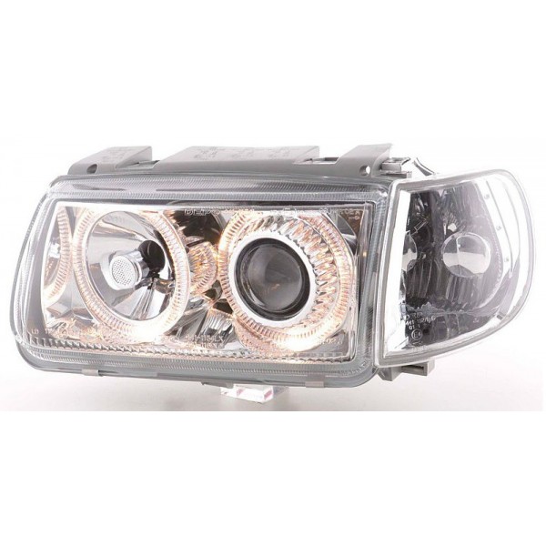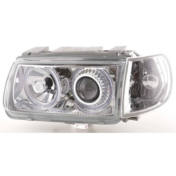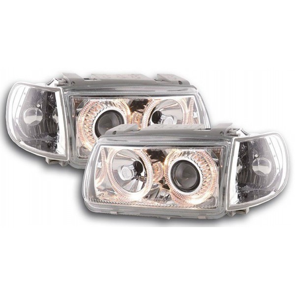 Přední čirá světla VW Polo 6N 95-98 – dálková světla, potkávací světla, směrová světla, angel eyes, evropská homologace "E". Super cena. Uvedená cena je za pár. Jsme přímým dovozcem!!