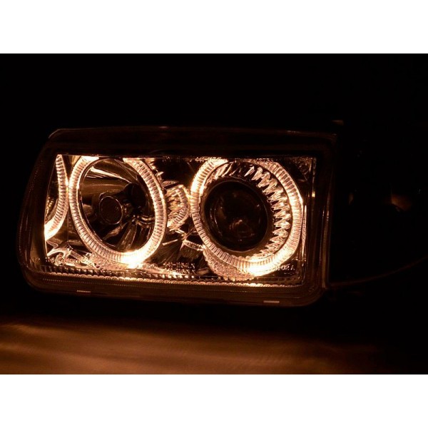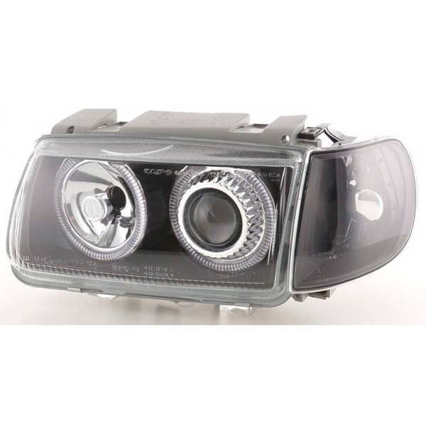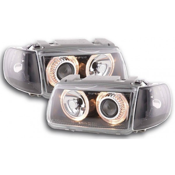 Přední čirá světla VW Polo 6N 95-98 – dálková světla, potkávací světla, směrová světla, angel eyes, evropská homologace "E". Super cena. Uvedená cena je za pár. Jsme přímým dovozcem!!