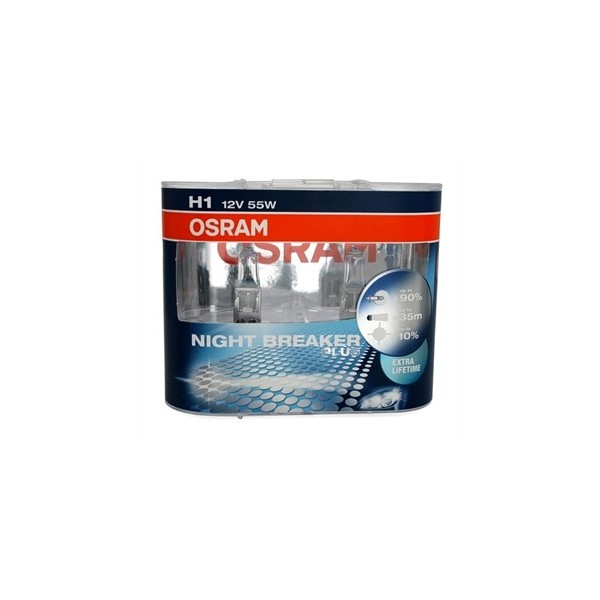Žárovky Osram Night Breaker Plus Extra Lifetime, H1 12V / 55W. Vysoká svítivost a dlouhá životnost. Schválena pro provoz na pozemních komunikacích. Uvedená cena je za pár.
