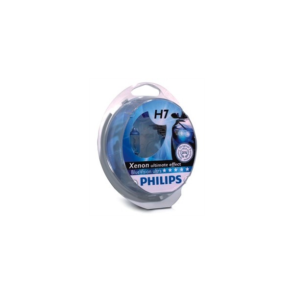 Žárovky Philips H7 BlueVision ultra Xenoneffect 12V 55W. Vysoká svítivost a dlouhá životnost. Schválena pro provoz na pozemních komunikacích. Uvedená cena je za pár.