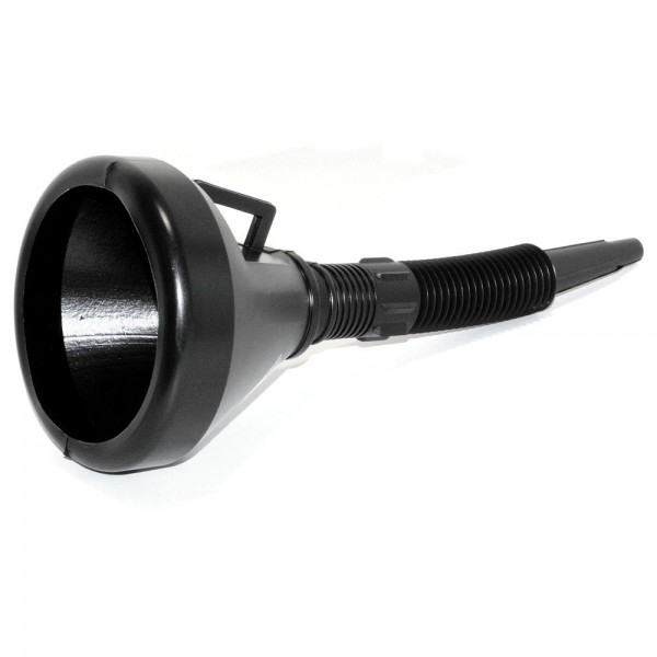 Plastový trychtýř se zabudovaným sítkem a ohebnou nálevkou. Barva černá.