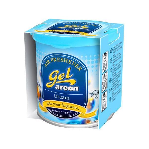Vůně AREON GEL CAN – DREAM. 80g. Přináší dlouho trvající vůni do Vašeho auta, domova nebo kanceláře. Stačí otevřít a užívat si.