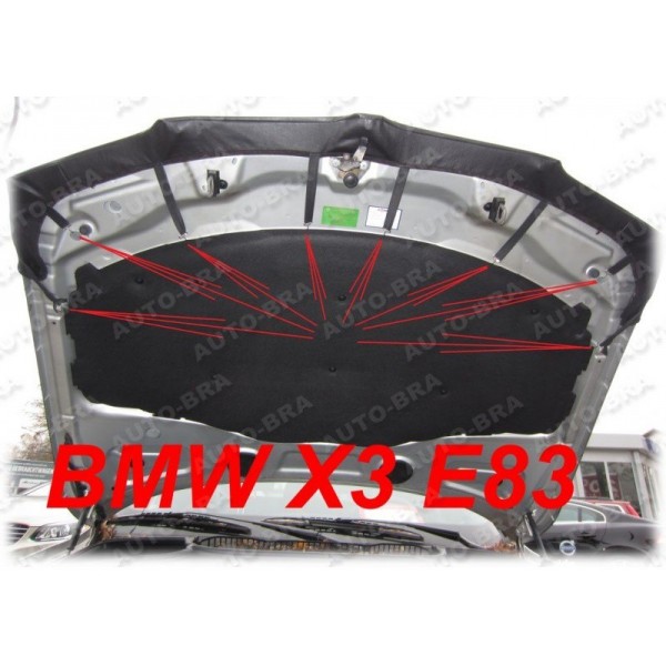 Kožený potah kapoty BMW X3 E83 2003-2010 černý. Vyroben ze syntetické kůže odolné proti roztržení, UV záření, slané vodě a povětrnostním vlivům. Zabraňuje poškození laku auta. Potah musí být natažen podél kapoty a dobře přiléhat. Gumové pásy zaručují bezpečné držení. Dodává vašemu vozidlu sportovní vzhled a mimořádný design! Německá výroba. Uvedená cena je za kus.