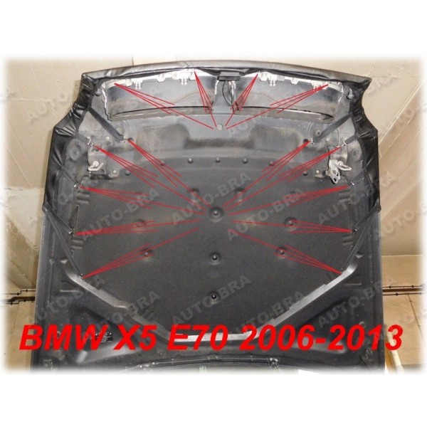 Kožený potah kapoty BMW X6 E71 E72 2008-2014 černý. Vyroben ze syntetické kůže odolné proti roztržení, UV záření, slané vodě a povětrnostním vlivům. Zabraňuje poškození laku auta. Potah musí být natažen podél kapoty a dobře přiléhat. Gumové pásy zaručují bezpečné držení. Dodává vašemu vozidlu sportovní vzhled a mimořádný design! Německá výroba. Uvedená cena je za kus.