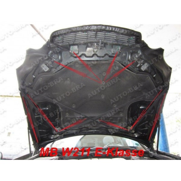 Kožený potah kapoty Mercedes E-Klasse W211 S211 2002-2006 černý. Vyroben ze syntetické kůže odolné proti roztržení, UV záření, slané vodě a povětrnostním vlivům. Zabraňuje poškození laku auta. Potah musí být natažen podél kapoty a dobře přiléhat. Gumové pásy zaručují bezpečné držení. Dodává vašemu vozidlu sportovní vzhled a mimořádný design! Německá výroba. Uvedená cena je za kus.