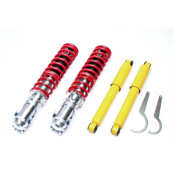 Sportovní výškově stavitelný podvozek Seat Inka Typ 9KS, rok výroby: 96-03. Nastavitelná výška, přední náprava: 35-65mm, zadní náprava: 0mm. Maximální zatížení přední nápravy: 930kg, maximální zatížení zadní nápravy: - kg. TUV: ano. Výrobce: TA-TECHNIX. Super kvalita za nejlepší cenu. Uvedená cena je za sadu.