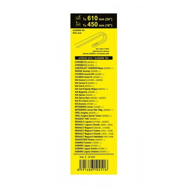 Stěrače Kia Carens II 02/02-, FLAT, 610+450mm