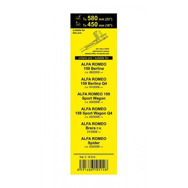 Sada stěračů Alfa Romeo 159 Sport Wagon Q4 03/06-, FLAT, 580+450mm