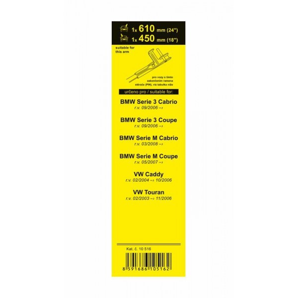 Stěrače BMW Serie M Cabrio 03/08-, FLAT, 610+450mm