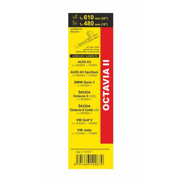 Stěrače BMW Serie 3 Touring 09/05-, FLAT, 610+480mm