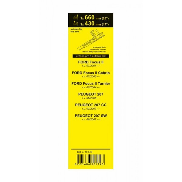 Stěrače Ford Focus II 07/04-, FLAT, 660+430mm