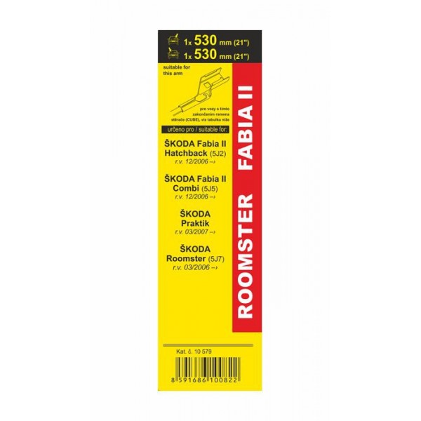 Stěrače Škoda Fabia II Hatchback (5J2) 12/06-, FLAT, 530+530mm
