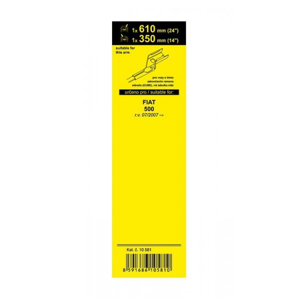 Sada stěračů Fiat 500 07/07-, FLAT, 610+350mm