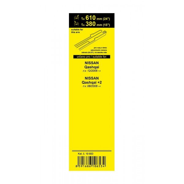 Stěrače Nissan Qashqai 12/06-, FLAT, 610+380mm