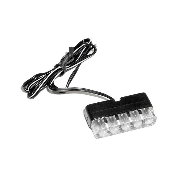 5 vysoce svítivých LED diod, napájení 12V=. Montáž nalepením nebo přišroubováním. Určeno jak pro vnitřní, tak pro vnější montáž (vodotěsné). Provedení čiré LED diody, červené světlo.